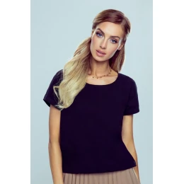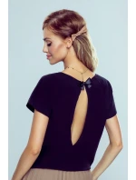 Okouzlující hladká halenka s krátkými rukávy a svůdným rozparkem na zádech. Vrchní část je zvýrazněna malou sladkou saténovou mašlí. Měkká a kvalitní tkanina.