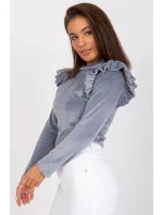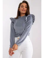 Halenka s krátkými rukávy v podobě volánku z žebrované tkaniny. Sýrový výstřih s ozdobným lemováním. .