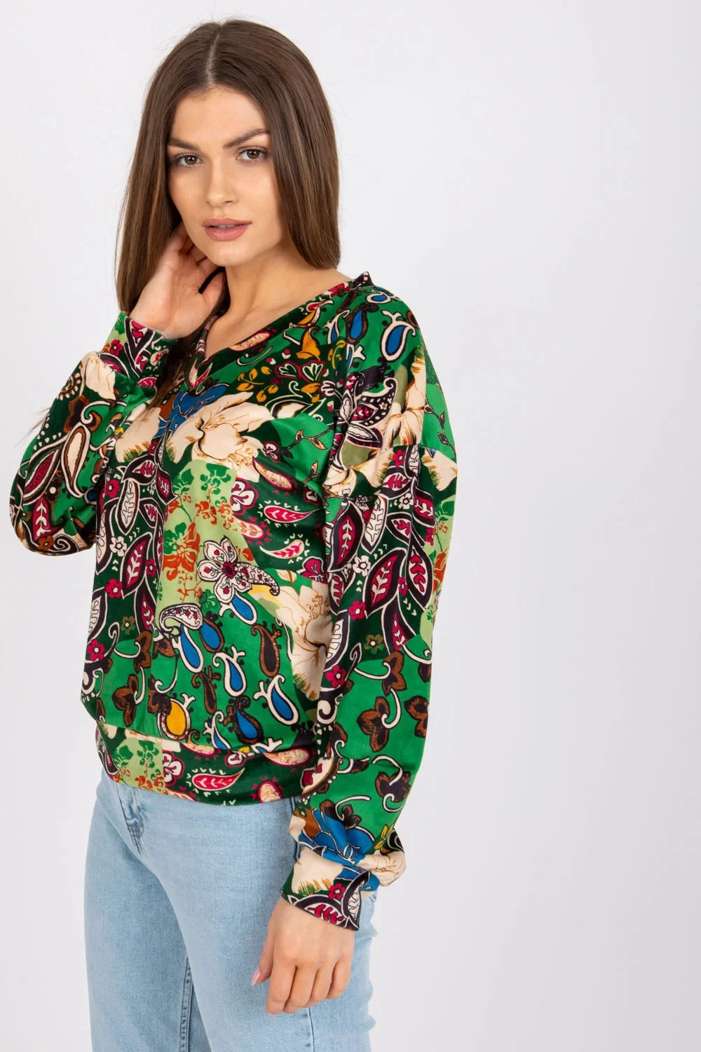 Dámská halenka s dlouhými rukávy ze zajímavé vzorované látky.