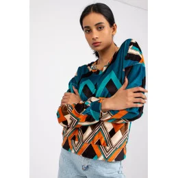 Velurová halenka s dlouhými rukávy a zajímavým vzorem. Skvěle se hodí pro mnoho příležitostí.