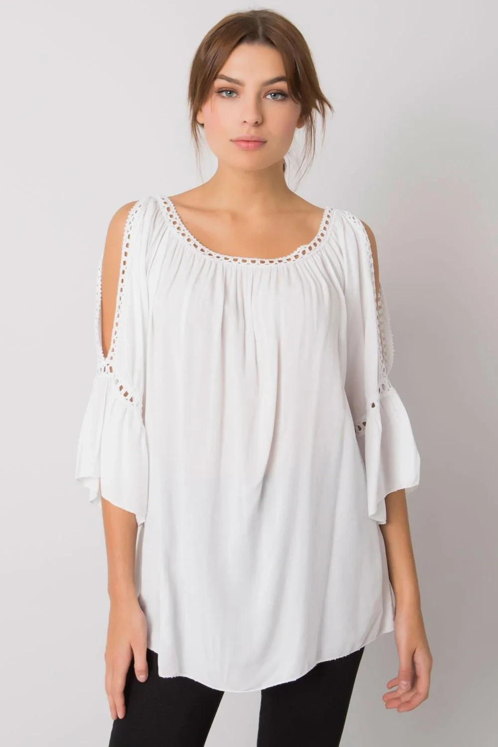 Volná halenka s 3/4 rukávy, ideální pro každodenní nošení. Ozdobné rozparky na rukávech.
