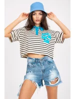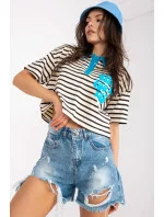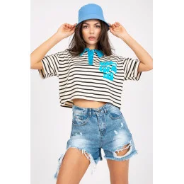 Polokošile s krátkými rukávy z pruhované látky. Dekorativní potisk na přední straně.