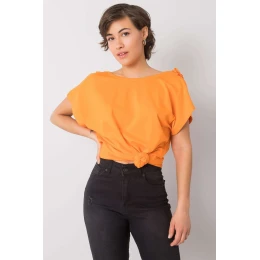 Halenka s krátkými rukávy a kulatým výstřihem. Zadní díl s hlubokým výřezem lemovaným ozdobným volánem.