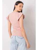 Halenka s krátkými rukávy v podobě volánku z žebrované tkaniny. Sýrový výstřih s ozdobným lemováním. .