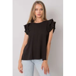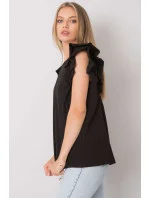 Halenka s krátkými rukávy v podobě volánků. Výřez na zadní straně s ozdobnou vazbou.