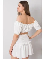 Krátká halenka s výstřihem ve španělském stylu a krátkými rukávy. Zavazování vpředu.