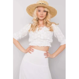 Zajímavá halenka s krátkými rukávy z látky s prolamovaným vzorem. Zavazování vpředu a na rukávech.