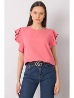 Jednoduchá halenka s krátkými rukávy v podobě volánku a kulatým výstřihem. Ideální pro mnoho příležitostí.