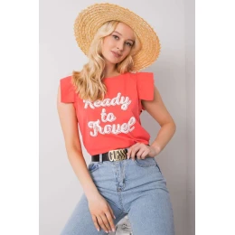 Halenka s krátkými rukávy v podobě volánku a kulatým výstřihem. Ozdobný nápis na přední straně.