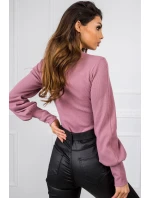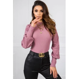 Halenka s dlouhými rukávy z žebrované tkaniny. Rukávy jsou zakončené širokými žebrovanými manžetami.