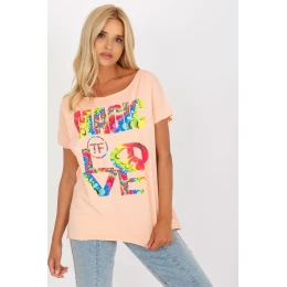 Halenka rovného střihu s krátkými rukávy a ozdobným potiskem na přední straně.