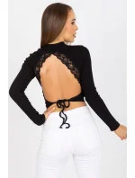 Halenka rovného střihu s 3/4 krajkovými rukávy a kulatým výstřihem.