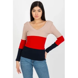 Halenka s dlouhými rukávy a srdíčkovým výstřihem. Halenka z žebrované tkaniny ve třech barvách.