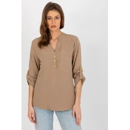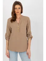 Halenka košilového střihu s dlouhými rukávy a výstřihem. Ozdobné zapínání a kapsa na přední straně. Rukávy lze ohrnout. Ideální pro mnoho příležitostí.