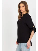 Halenka rovného střihu s 3/4 krajkovými rukávy a kulatým výstřihem.