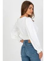 Halenka s krátkými rukávy v podobě volánku z žebrované tkaniny. Sýrový výstřih s ozdobným lemováním. .
