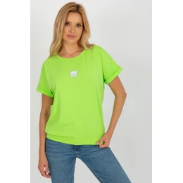 Dámská halenka s krátkými rukávy a kulatým výstřihem. Halenka je vyrobena z pevného materiálu s ozdobnou nášivkou na přední straně.