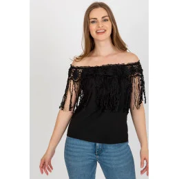 Letní halenka s výstřihem ve španělském stylu. Halenka zdobená ozdobnou krajkou se střapci.