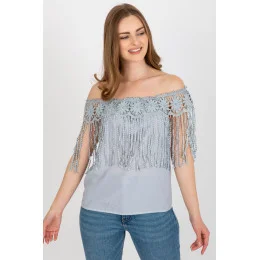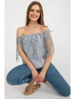 Letní halenka s výstřihem ve španělském stylu. Halenka zdobená ozdobnou krajkou se střapci.