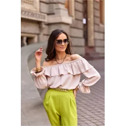Dámská halenka Heart MM Fashion - krátké rukávy - na přední straně háčkované zlaté srdce - ve spodní části na zavazování - šířka pod prsy 116 cm - celková délka 60/70 cm - modelka měří 164 cm
