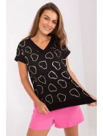Volná halenka s krátkými rukávy a srdíčkovým výstřihem. Lesklý potisk ve tvaru srdce na přední straně.