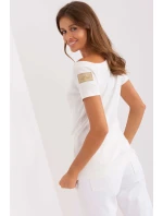 Halenka z žebrovaného materiálu s krátkými rukávy a asymetrickým výstřihem. Na přední straně našitá kapsa.