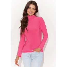 Funkční dámská halenka z elastické neprůhledné tkaniny je klasikou mezi halenkami. Výstřih v podobě praktického roláku v kombinaci s dlouhými rukávy vás zahalí v chladnějších dnech. Pozlacená destička v horní části zad mezitím dodává jemnou eleganci. Díky svému jednoduchému tvaru je ideální pro ležérní stylizaci, kterou můžete nosit jak do kanceláře, tak do města. Dámský rolák se skvěle hodí jak ke kalhotám na míru, tak ke kalhotám střihu mom fit. Tato halenka kombinuje funkčnost s elegancí a vytváří tak úspěšný recept na vzhled.