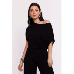 Tato halenka z vysoce kvalitního viskózového úpletu je esencí elegance a pohodlí. Měkký materiál dokonale obepíná tělo a zároveň poskytuje výjimečný komfort při nošení. Díky výrazným rysům je tento model velmi originální a nápaditý, ideální pro nejrůznější příležitosti. Výstřih halenky jemně spadá na ramena, čímž vytváří jemný, smyslný efekt. Je ideální pro ženy, které ocení jemnost a stylovou nonšalanci. Krátké netopýří rukávy dodávají lehkost a jemnost a celkovému vzhledu dodávají módní nádech. Jedním z nejvýraznějších prvků této halenky je nařasený spodní lem. Tento detailní doplněk nejenže dodává halence jedinečný vzhled, ale také jemně tvaruje siluetu a dodává jí lehkost a jemnost. Plisování je módním akcentem i praktickým řešením, které dodává halence další půvab. Stojí za zmínku, že tato halenka byla navržena a vyrobena v Polsku, což je zárukou vysoké kvality zpracování a závazku k jedinečnému designu. Výběrem této halenky investujete nejen do pohodlí a stylu, ale také podpoříte domácí módní produkci. Objevte nový rozměr elegance s touto pletenou halenkou, která je spojením polského designu a světové úrovně.