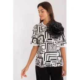 Objevte elegantní pro každodenní nošení vhodný tílko, který se skvěle hodí jak do práce, tak při každodenních aktivitách. Tento tílko kombinuje klasický styl a moderní detaily, nabízející pohodlí a trendy vzhled. Tílko je zdobeno jemnou broží ve tvaru květu, která mu dodává šarm a eleganci, činíce ho výjimečným. Moderní geometrický vzor přitahuje pohled a dodává tílku stylový charakter, dokonale zapadající do příležitostného dress codu. Standardní délka tílka, která skvěle ladí s různými stylizacemi, jak s kalhotami, tak s sukničkami. Krátké rukávy zajišťují, že tílko je ideální na teplejší dny, poskytující současně pohodlí a volnost pohybu. Klasický, kulatý výstřih, který dodává tílku univerzální charakter a hodí se pro různé typy postav. Tento každodenní tílko s ozdobnou broží ve tvaru textilního květu je vynikající volbou pro ženy, které si cení stylu a pohodlí. Jeho moderní design a vysoce kvalitní materiál ho činí ideálním na každou příležitost, od pracovních setkání po každodenní výlety.