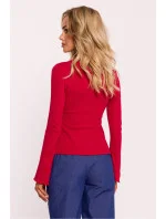 Přeložený text: Přizpůsobená halenka vyrobená z pruhované bavlněné pleteniny, ideální pro každodenní stylizace. Má dlouhé rukávy, které jsou lehce rozšířené na spodní části a dokončené dekorativním lemováním, které přidává jemnou eleganci. Navržena a vyrobena v Polsku, halenka kombinuje pohodlí a styl.