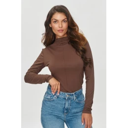 Univerzální dámská blůza vyrobená z lehké prodyšné viskózy je klasikou v podzimně-zimní garderobě. Model má vysoký gol a dlouhé rukávy, což zajišťuje funkcionalitu. Prošití na přední straně blůzy jí dodává originalitu a výjimečný charakter. Model je jemně přizpůsobený, ale neomezuje pohyb díky elastickému materiálu. Jeho jednoduchá forma je skvělým doplňkem mnoha stylizací, jak pro každodenní nošení, tak i pro více formální příležitosti. Model je ideální pro ženy, které oceňují spojení pohodlí, funkčnosti a nadčasovosti.
