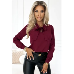 Business halenka značky Numoco s dlouhými rukávy, vyrobená z měkké, na dotek příjemné tkaniny v elegantní vínové barvě. Pozornost upoutá stylové vázání ve výstřihu, které celku dodává ženský a elegantní charakter. Ideální na formální schůzky, do kanceláře nebo na elegantní vycházky. Vyrobeno v Polsku, což zaručuje nejvyšší kvalitu zpracování a pozornost věnovanou detailům.