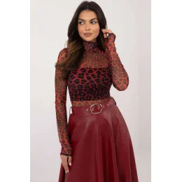 Elegantní a sexy top z mřížky, ideální na každou příležitost. Přiléhavý střih zdůrazňuje postavu a jemná mřížka dodává tajemství. Golfový límec chrání před chladem a dodává eleganci. Dlouhé rukávy zaručují pohodlí a eleganci. Zvířecí vzor dodává topu divoký charakter a zajistí, že se budete vynikat z davu. Elastický materiál se přizpůsobí tělu, poskytující plnou volnost pohybu. Top je průhledný. Modelka má na sobě černý top.