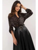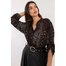 Tato univerzální blůza je must-have v každé skříni. Vyrobená z příjemné směsi viskózy a nylonu, poskytuje pohodlí po celý den. Dlouhý rukáv s možností zkrácení umožňuje přizpůsobit blůzu teplotě. Výstřih do V s límečkem dodává eleganci, a zapínání na knoflíky umožňuje upravit hloubku výstřihu. Blůza se skvěle hodí jak do každodenních, tak do formálních stylizací. Tato blůza je investicí do tvého šatníku. Její univerzální střih a praktická řešení ti zajistí pohodlí a styl ve všech situacích.