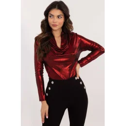 Elegantní blůza s rafinovaným charakterem, ideální na formální události a večírky. Vyrobená z lesklého materiálu z polyesteru a viskózy, který přitahuje pozornost a dodává outfitu lesk. Blůza má bohatou strukturu materiálu, co jí dodává jedinečný vzhled. Má dlouhý rukáv a volný výstřih, který krásně padne na postavě, dodávajíce lehkost a eleganci. Dekorativní záhyby na materiálu přidávají další prvek elegance, zdůrazňující její původní design. Standardní délka dělá z blůzy skvělý doplněk k různým outfitům.