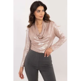 Elegantní blůzka s rafinovaným charakterem, ideální na formální příležitosti a večírky. Vyrobená z lesklého materiálu z polyesteru a viskózy, který přitahuje pozornost a dodává outfitu lesk. Blůzka má různorodou texturu materiálu, co jí dodává jedinečný vzhled. Má dlouhý rukáv a lehký výstřih, který se krásně přizpůsobuje postavě, dodávajíc celkové lehkosti a eleganci. Dekorativní záhyby na materiálu přinášejí další prvek elegance, zdůrazňující její originální design. Standardní délka dělá z blůzky skvělý doplněk k různým outfitům.