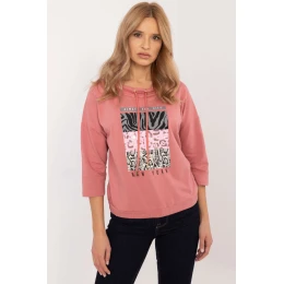 Každodenní košile v casual stylu, ideální pro volné, každodenní outfit. Vyrobená z příjemné bavlny s přídavkem elastanu, poskytuje pohodlí a jemnou pružnost, ideální na aktivní dny. Košile s standardní délkou a 3/4 rukávy je praktickou volbou na každé roční období. Přední část zdobí stylový potisk, který jí dodává jedinečný charakter a módní akcent. Kulatý výstřih byl obohacen o šňůrky ke snadnému uvázání, které plní jak dekorativní, tak praktickou funkci, umožňují lehkou personalizaci outfitu. Je to ideální kousek oblečení pro ženy, které si cení volnosti a stylu ve svém každodenním oblékání.
