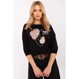Volně padající blůza na zapínání přes hlavu, skvělá na každý den i do práce. Vyrobená z měkké bavlny s přídavkem elastanu, zaručuje pohodlné nošení a volnost pohybu. Model s standardní délkou a rukávem 3/4 je univerzální volbou pro každé roční období. Hlavní ozdobou blůzy je elegantní vyšívání obohacené jemnými perlami a třpytivými zirkony, které jí dodávají výjimečný, ženský charakter. Skvěle se kombinuje jak s džíny, tak s elegantnějšími kalhotami nebo sukní, vytvářející stylový a pohodlný outfit.