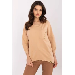 Elegantní a pohodlný každodenní top vyrobený z vysoké kvality bavlny s přídavkem elastanu. Model z hladkého materiálu s kulatým výstřihem a rukávem 3/4 poskytuje pohodlí při nošení každý den. Délka topu ho skvěle doplňuje s džíny i elegantními kalhotami. Na přední straně je praktická kapsa zdobená dekorativními knoflíky, dodávající jemný šarm.