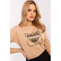 Casual dámský top s standardní délkou, vyrobený z příjemné bavlny s přídavkem elastanu, co zajišťuje pohodlí nošení a ideální přizpůsobení postavě. Model s 3/4 rukávem a kulatým výstřihem je nadčasovou volbou na každý den. Dominantní vzor v podobě potisku a nápisů dodává topu módní, moderní charakter. Skvěle se hodí do každodenních outfitů, hodí se jak k džínům, tak k sukním nebo kalhotám z materiálu.