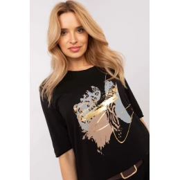 Elegantní každodenní blůzka standardní délky vyrobena z měkké bavlny s přídavkem elastanu, co zajišťuje pohodlí a ideální přizpůsobení. Model s 3/4 rukávem a kulatým výstřihem je univerzální volbou na každou příležitost. Dominantní vzor spojuje potisk s motivem zvířecího vzoru na přední straně, dodávající blůzce módní a výrazný charakter. Skvěle se hodí k neformálním stylizacím, skvěle ladí jak s džíny, tak s sukněmi nebo elegantními kalhotami.