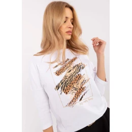 Elegantní top s prodlouženým střihem, ideální na každý den. Vyroben z vysoké kvality bavlny s přídavkem elastanu, poskytuje pohodlí a volnost pohybu. Model s delší délkou, s 3/4 rukávem a kulatým výstřihem, skvěle se hodí do různých stylizací. Dominantní vzor s motivem zvířat vpředu jí dodává módní a výrazný charakter. Skvěle se hodí k legínám, džínům nebo přiléhavým kalhotám, ideální pro ženy, které ocení pohodlí a styl.