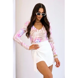 Představujeme tričko Essie v pastelovém zebrovém vzoru, skvělá volba pro ženy, které si váží stylu a pohodlí. Toto unikátní tričko je ideálním doplňkem každého šatníku, který se hodí jak na každý den, tak na speciální příležitosti. Jeho pastelové barvy a módní design přitahují pohled a umožní ti vyniknout z davu. Tričko má decentní střih, který jemně zdůrazňuje siluetu. Vyrobeno z vysoce kvalitních materiálů, skládajících se z 95 % viskózy a 5 % elastanu, poskytuje úžasnou měkkost a pohodlí nošení. Elastický materiál zajišťuje, že se tričko perfektně přizpůsobí tělu, poskytujíc volnost pohybů. Díky svému elegantnímu vzhledu se tričko skvěle hodí k různým stylizacím. Můžeš ho kombinovat s oblíbenými džíny, sukní nebo šortkami, vytvářejíc jak ležérní, tak formální outfity. Pastelový zebrový vzor dodává tričku originální charakter, ideální pro ty, kteří rádi experimentují s módou. Neotálej s nákupem tohoto jedinečného trička! Tričko Essie v pastelovém zebrovém vzoru je must-have ve tvém šatníku. Nabízí nejen vzhled, ale také pohodlí a kvalitu, které tě jistě nadchnou. Přidej ho do své sbírky ještě dnes a užívej si stylu na každém kroku!