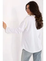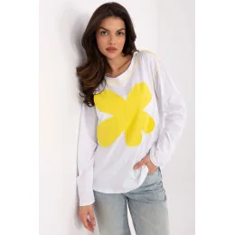 Casual dámský top, který spojuje pohodlí a jemný styl. Vyroben z měkké a elastické směsi bavlny a elastanu, zajistí pohodlné nošení a ideální přizpůsobení postavě. Má klasický kulatý výstřih a dlouhé rukávy, takže se skvěle hodí na chladnější dny. Hlavní ozdobou je potisk květiny na přední straně, který přidává topu ženský šarm. Bez zapínání je mimořádně pohodlný a snadno se obléká. Skvěle se hodí do každodenních outfitů, skvěle ladí jak s džíny, tak s sukněmi.