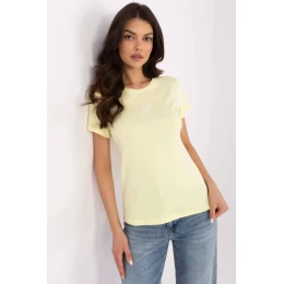 Casualový top s klasickým střihem, ideální na každý den. Vyrobena z měkké a elastické směsi bavlny a elastanu, zajišťuje pohodlné nošení a volnost pohybu. Standardní délka zaručuje, že se skvěle hodí k různým outfitům. Model s krátkým rukávem a kulatým výstřihem zdůrazňuje univerzální charakter topu. Jemný, malý vyšívaný motiv na přední straně dodává jemný akcent a celkově dokončuje stylový vzhled. Skvělá volba na každou příležitost!