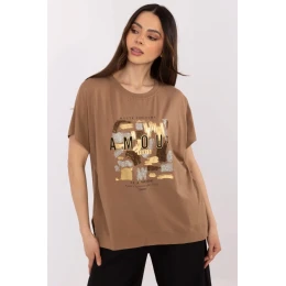 Klasická dámská košile ideální na každodenní stylizace. Vyrobena z vysoce kvalitní směsi bavlny a elastanu, zaručuje pohodlí nošení a volnost pohybu. Model s standardní délkou, s krátkým rukávem a klasickým, kulatým výstřihem, se skvěle hodí do mnoha každodenních outfitů. Košili zdobí efektní potisk obohacený aplikací a drobnými flitry, které dodávají celku jemný lesk a moderní charakter. Ideální volba pro ženy, které rády kombinují pohodlí se subtilními, módními detaily.