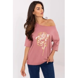 Casual dámský top ideální na každodenní stylizace. Vyrobený z příjemné směsi bavlny a elastanu, poskytuje pohodlí nošení a skvělé přizpůsobení postavě. Top má standardní délku, krátký rukáv a klasický kulatý výstřih, který se hodí do mnoha univerzálních kombinací. Dominantním prvkem je decentní potisk ve tvaru růže, který dodává celku ženský šarm a jemnou eleganci. Skvělá volba pro ženy, které ocení pohodlí spojené s módním akcentem ve svém každodenním outfitu.