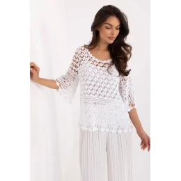 Dvoudílný set v boho stylu - lehká, prosvětlená bavlněná blůza a přiléhavý top na ramínka. Ideální volba pro každodenní nošení pro ženy, které ocení volnost, ženskost a přírodní materiály. Blůza má prosvětlený vzor, který jí dodává romantický a éterický charakter. Vyrobena z prodyšné bavlny, má standardní délku a 3/4 rukávy, což ji činí skvělou volbou na teplejší dny. Kulatý výstřih zdůrazňuje linii krku a volný střih zajišťuje pohodlí. Součástí setu je elastický top na tenkých ramínkách, vyrobený z měkké viskózy s přídavkem elastanu, který se skvěle přizpůsobuje postavě a zajišťuje pohodlí po celý den. Složení: Blůza: 100% bavlna Top: 90% viskóza, 10% elastan
