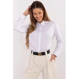 Elegantní košilová blůza s klasickým střihem je ideální volbou na různé příležitosti, hodí se jak jako součást elegantního outfitu, tak i jako každodenní pracovní oděv. Vyrobená z převažující bavlny poskytuje pohodlí a prodyšnost po celý den. Hladký materiál zdůrazňuje minimalistický, nadčasový charakter blůzy a ozdobný proužek na přední straně jí dodává jemný šarm a eleganci. Model s standardní délkou, dlouhým rukávem a klasickým límečkem skvěle ladí s saka, kalhotami s lemem nebo olověnou sukní. Jedná se o univerzální kus oblečení, který by neměl chybět v žádné ženské šatně.