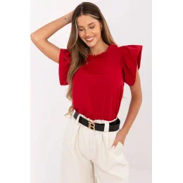 Elegantní blůzka s hladkým finišem je nadčasovým návrhem pro ženy, které si cení klasiky a jemných detailů. Vyrobená z převládající bavlny poskytuje pohodlí při nošení a zároveň vypadá mimořádně stylově a žensky. Blůzka má standardní délku, díky čemuž se skvěle hodí jak k nohavici, tak k sukní. Krátké rukávy ve formě volánků jí dodávají lehkost a romantický charakter, zatímco kulatý výstřih zakončený drobným ozdobným volánkem představuje elegantní akcent, který přitahuje pozornost. Je to ideální volba pro návštěvní příležitosti a do práce, skvěle se hodí do kancelářských stylizací, spojující pohodlí s elegancí.